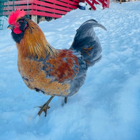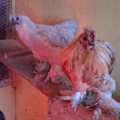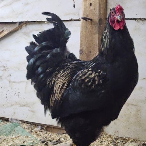 Ung hane naturlig ruget fram og oppdratt av mor. Nå er han så stor at mor ikke vil passe på og far vil ikke dele plassen. Gis bort men ikke til mat.