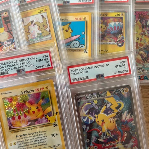 Selger fire graderte Pokémon-kort. Kortene er i topp samlerstand og oppbevart trygt i PSA-slabs. Perfekt for samlere eller som investering.