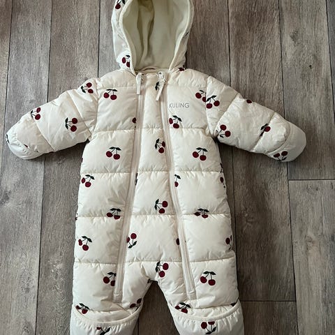 Hettejakke med glidelås og bukser med snøring.