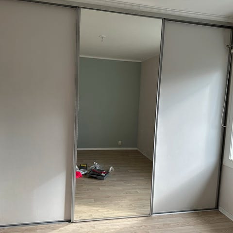 Elfa skyvedørsgarderobe med to dører gis bort mot henting. Det er 2 etasje med heis.