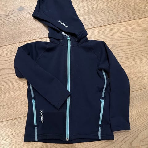 Selger en pent brukt jakke (ikke så tynn, som en fleece - kan også brukes som lag nummer to) fra Houdini. Detaljer som glidelås på lommene, avtagbart hette med trykknapper og tommelhull. Størrelse 110.