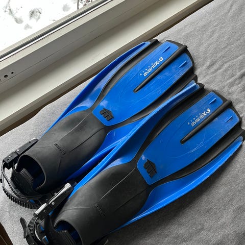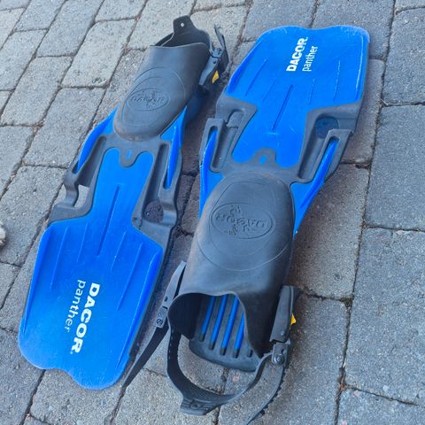 Dykkeføtter i størrelse L-XL, farge svart. I sin tid kjøpt hos Prodykk i Oslo. Utstyrt med justerbare stropper for tilpasning til fotstørrelse.