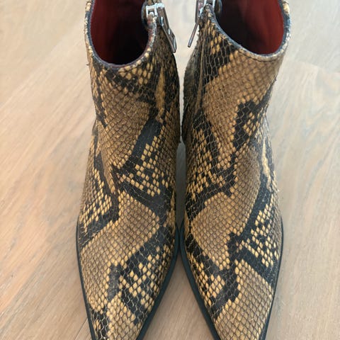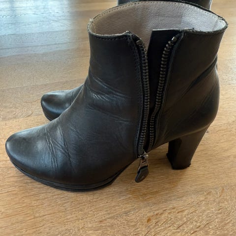 Svært pent brukt. Merket str 38, men passer den som bruker str 37. Høye, men komfortable å gå mef. Lagt på ekstra såle hos skomaker for å kunne tåle vann. Koster nye ca. 4000 kr.