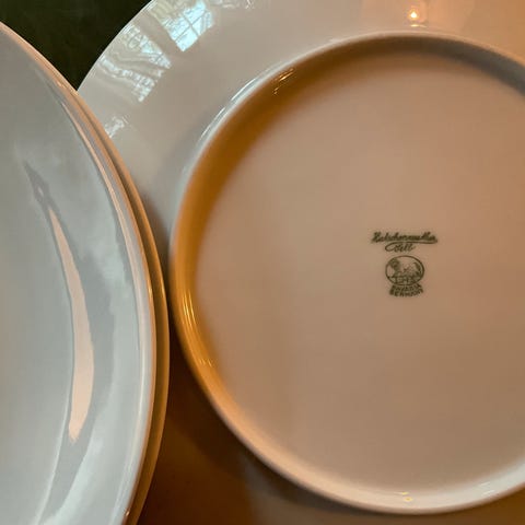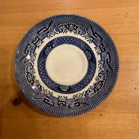 Churchill Out of the Blue tefat i god stand. 16 cm diameter. Hvit og blå farge.