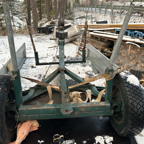 Svært god henger å ha til ATV, med sterk vinsj (Honda-aggregat). Følgjer med fjernkontroll, slik at eg kan enkelt vere i skogen åleine, og trekke inn tømmer på eiga hand.