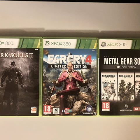 Samling av Xbox 360 spill inkludert Far Cry 2, Far Cry 3, Dead Island Riptide Special Edition, og Pirates of the Caribbean: At World's End. Spillene dekker flere sjangere og tilbyr varierte spillopplevelser.