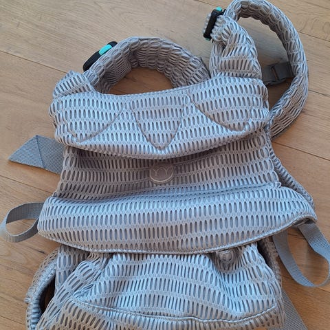 Selen er så og si ikke brukt, bare prøvd et par ganger inne. Ingen slitasje eller merker. Selges da vi endte opp med å bruke mest bæresjal.