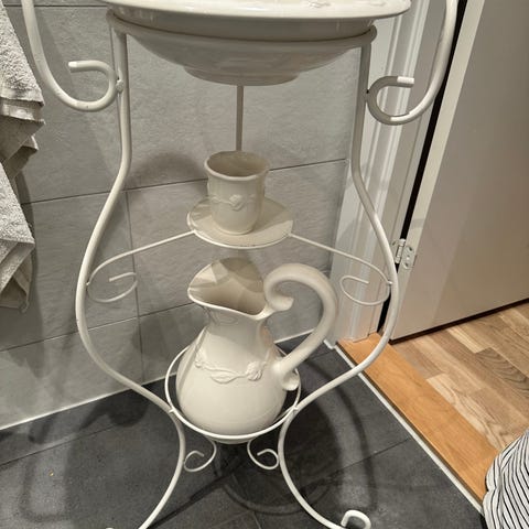 Svedbergs servantskap bredde 65 cm, med servant i støpt marmor selges. FM-Mattsson ettgreps blandebatteri følger med. Veggskap b40 h70 følger også med. Klart for henting medio januar.