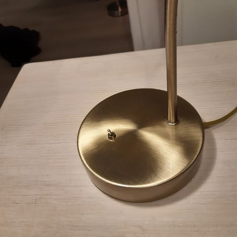Nattlampe med noen skader som vist på siste bilde. Fungerer fortsatt bra med kranfunksjon for 3 forskjellige lysstyrker. Batteridrevet, enkel å flytte rundt og bruke.