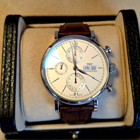 Selger en pent brukt Longines Master Chronograph ref L2.629.4.78.6. Klokken fremstår tilnærmet ny med noen få lette bruksmerker som er uungårlig på en polert klokke som dette. Klokken måler 40mm og lenken har alle ledd. Kommer uten tilbehør og servicehistorikk er ukjent. Merker ikke noe avvik på urverket og kronografen nullstiller presist til kl 12. Nypris i butikk er 39 900.