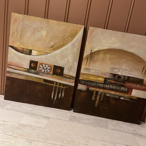 Selges samlet. Største bildet er 30x40 cm. De to mindre er 24x34 cm.