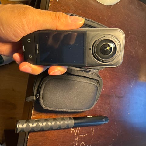 Selger Insta360s flaggskip X5 360-kamera som er lite og pent brukt. Dette er et helt rått kamera for tur, reise og action og filmer i hele 8K for skarpe og detaljerte bilder. Det er enkelt å bruke og gir imponerende video rett ut av kameraet. Link for mer detaljer: