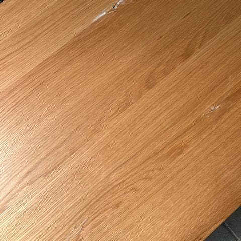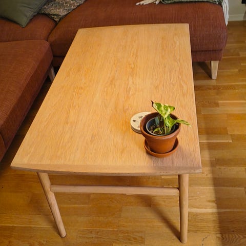 Salongbord i hel eik 60x60 har to stk selges for 350,-