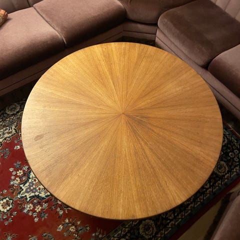 En del riper på det, men det gir det også mer sjarm og den rustikke stilen. Tror det er ekte tre men litt usikker på type- selges dermed billig!