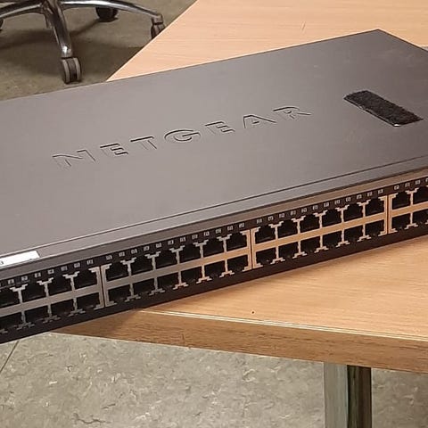 Netgear GS324 24-port Switch med 24 porter for kablet nettverkstilkobling. Enheten er designet for å administrere og distribuere nettverkstrafikk i mindre til mellomstore nettverksmiljøer.