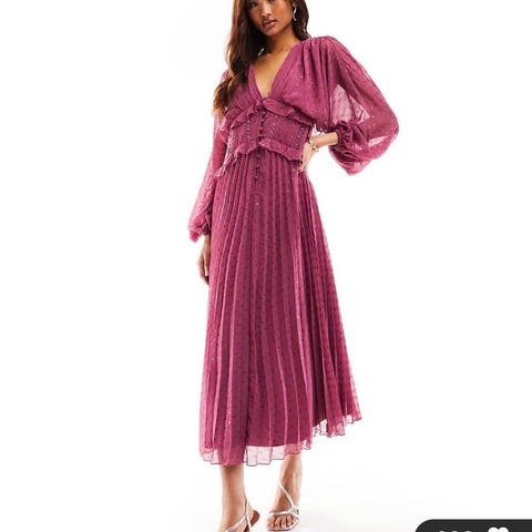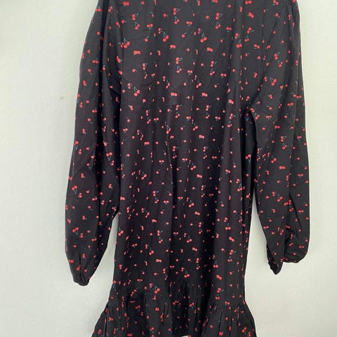 Fin kjole med ballongermer og vaffelsøm på overdelen, knyting i ryggen. Kjøpt på Boii i København, strl S