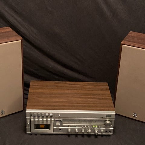 Retro Aiwa stereoanlegg fra 80 tallet , ikke brukt på mange år, stått i rack til nå,testet alt fungerer unntatt kasett der må de skiftes drivreim selges kr 1200.- må hentes