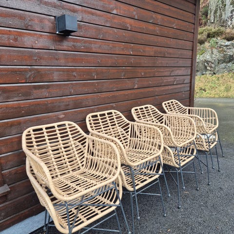 Vintage låvefunn hagemøbler i tre laget sent 1950 tall, ble laget på sløyd av mann som nå ville vært i midten 80 åra. Hvor ofte blir slikt til salgs! 3 stoler, en solstol og hagebord. Møblene har vært lagret på tørr låve i minst 50 år og er i god stand. Hagebordet som er laget samtidig, bilde av det kommer ila dagen da det pr nå står julepynt på. Må hentes på Nedenes i Arendal. 2500 kr eller bud.