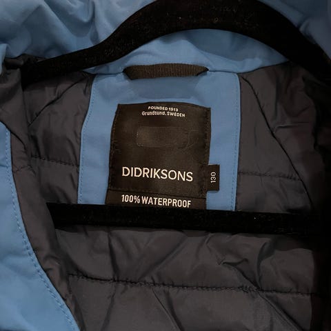 Ett år gammelt Didriksons str 130 dress til salgs. Kjøpt hos XXL 17.01.2024.