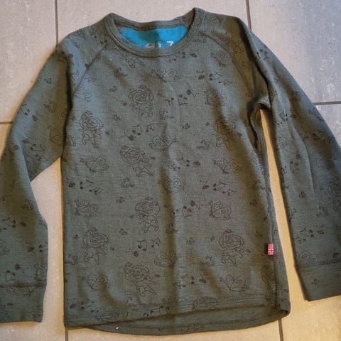 50 prosent ull ,50 prosent polyester, størrelse 122/ 128. 7 år. Merke Neo Mon.