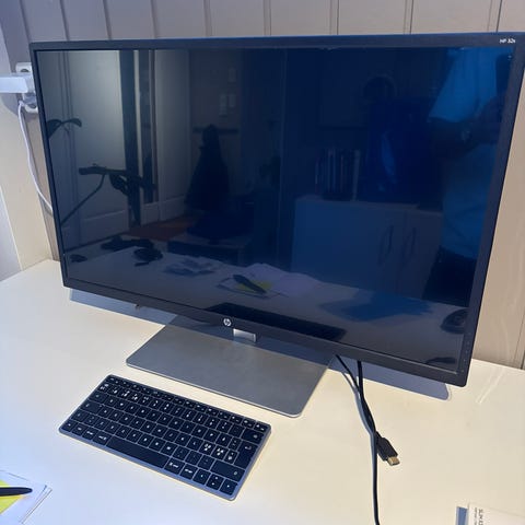 Skjermen fungerer perfekt og har ingen riper eller skader på selve panelet. Strømkabel og HDMI følger med
