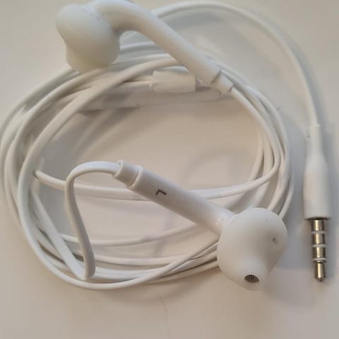 Samsung headset med trådløs lading i et svart etui. Egnet for bruk med kompatible enheter for lydavspilling og samtaler.