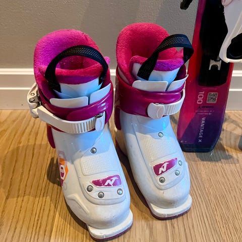 Eldre, meget godt brukt Rossignol Comp9 junior alpinski. Look team 4 bindinger.