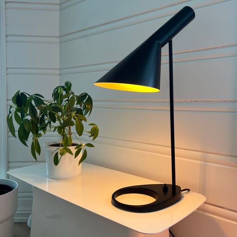 &Tradition AJ bordlampe designet av Arne Jacobsen 1929, en designklassiker! Lampen har en svart skjerm og base med en fleksibel arm i metall. Egnet for bruk som arbeids- eller leselampe på skrivebord eller bord.