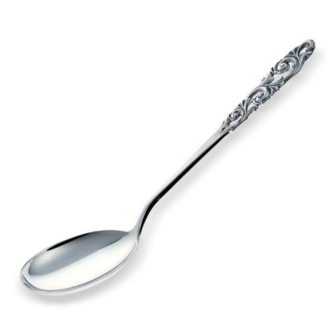 Selges skje laget spesielt for servering fra fat eller bolle. En elegant detalj til festmåltidet. Sammen med anretnings-/ serveringsgaffelen er dette er delikat serveringssett.