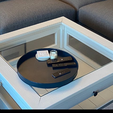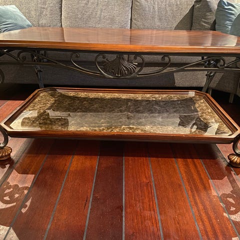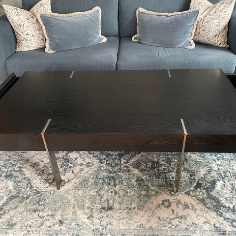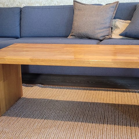 Flott salongbord i heltre og børstet stål