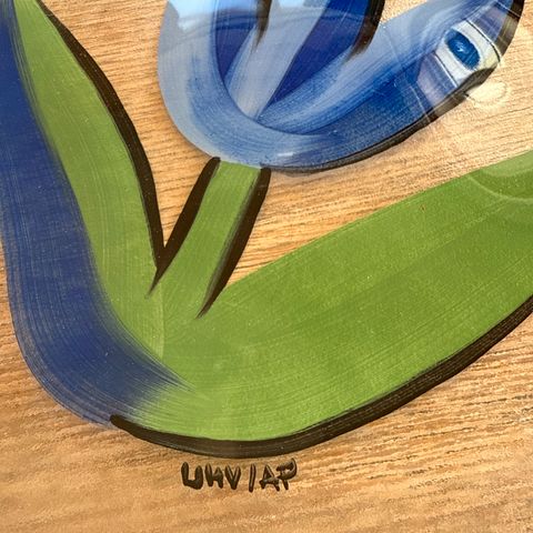 Kosta Boda Tulip vase og skåler laget i glass. Produktene har en hvit, blå og grønn dekor inspirert av tulipaner. Vasen har en rund form med tulipanmønster,. Designet av Ulrica Hydman Vallien. Alle er i perfekt stand, ps skålene har ulik dekor og form. Vase 400,- og skåler 250,- stk. Pakkes godt ved evt sending pr post.