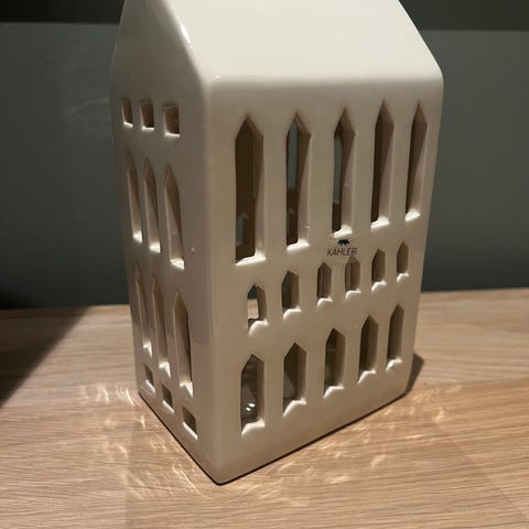 Kähler dekorativt ornament i keramikk med design som etterligner et hus med flere vinduer. Kan brukes til interiørdekorasjon. Pris kan diskuteres