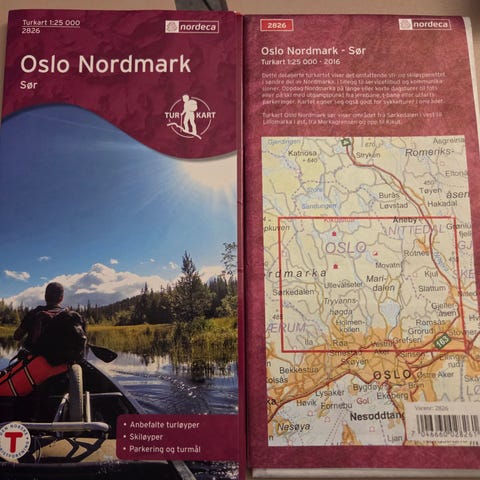 Kartet er designet for turgåere og viser flere populære turstier i området.
