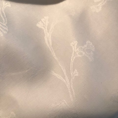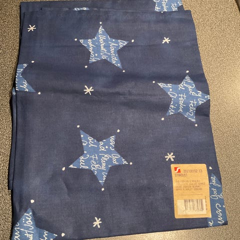 Turkis farget duk med mønster i gull fra Francoise Saget. 50% bomull - 50% polyester.