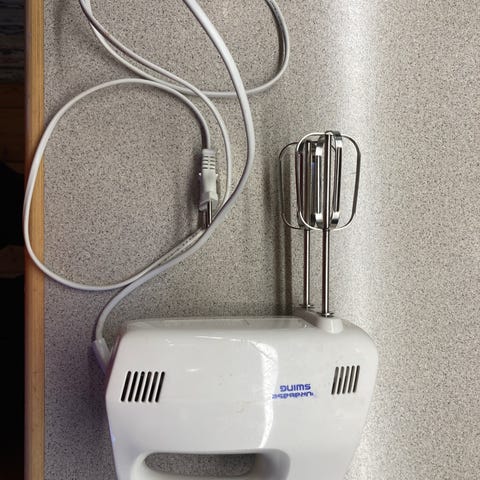 Russell Hobbs stavmikser med tilbehør som hakker og visp. Inkluderer en beholder for hakking av grønnsaker og en målebeger for miksing av frukt eller andre ingredienser. Egnet for ulike matlagingsoppgaver som hakking, visping og miksing.
