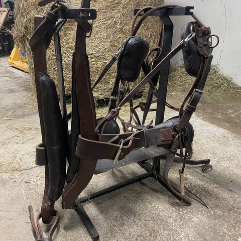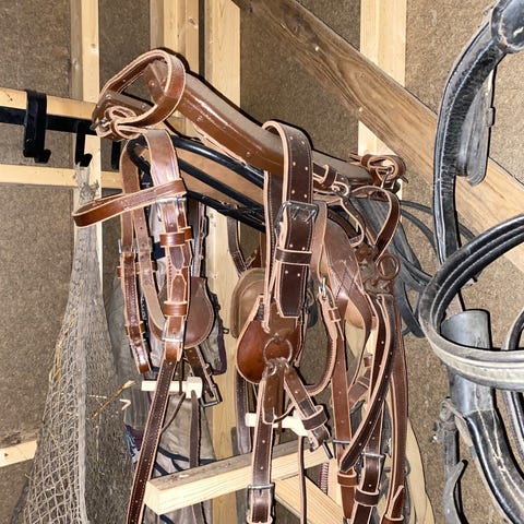 Dralæret ble for kort til min ponni, og jeg byttet de derfor ut med halsreimer til kalv. Det ser kanskje ikke så pent ut, men det fungerte utmerket til en ung ponni i vekst.