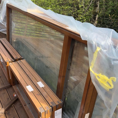 Et stort stykk 3-lags vindu selges. Se bilde for spesifikasjoner. Vindu og glass er fin stand.