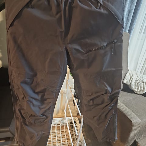 Regnbukse med seler, 8 år. Kun brukt et par ganger, men den ene strikken på buksebenet har løsnet.