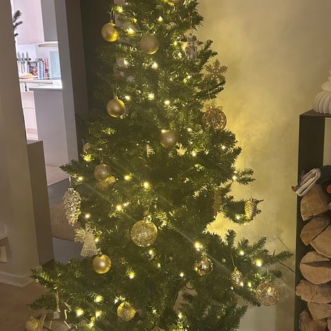 Selger et koselig lite juletre. Det er pakket ned og klar for henting 😊
