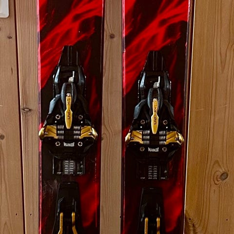 Bindingen er en KingPin 10. Litt slark i begge bindingene bak.