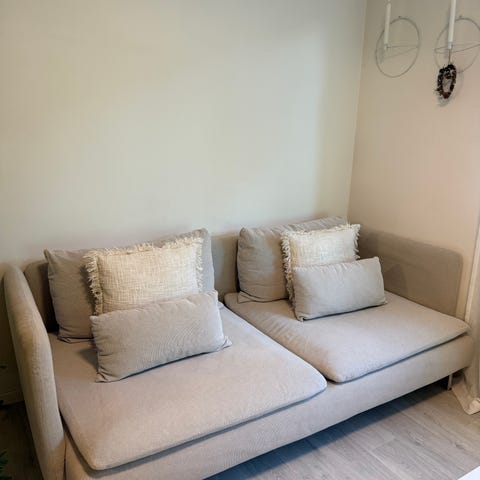 Sofa Søderhamn fra IKEA i god stand, kjøpt for ca 2 år siden. Avtagbart trekk som kan vaskes. Har et par flekker i hjørnet som nok går vekk i vask, se bilde.