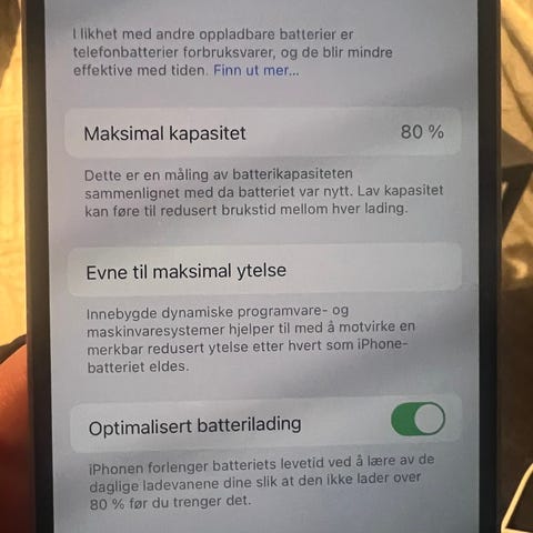 Apple iPhone 12 mobiltelefon med 256 GB lagringskapasitet i svart farge. Batterikapasiteten er på 79 % med optimalisert batteriinnstilling aktivert. Telefonen leveres med original eske uten lader.