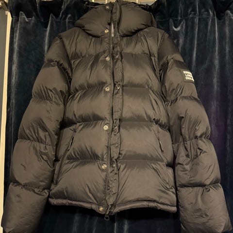 Ekte Burberry jakke med avtagbar armer i størrelse M. Jakken er mørke blå og skreddersydd hos Burberry. Passer for menn.