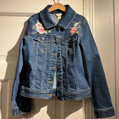 Nydelig denim jakke fra Monsoon med broderi detaljer. Str 11-12 år, opplever mer at den kan passe en str 146 enn 152.