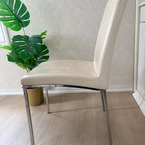 6 stk. Ygg&Lyng spisestuesoler selges samlet for 400,- meget rimelig. Setet er synelig og godt brukt. Mulig det finnes en quick-fix for å få dem til å se ut som nye. Meget gode å sitte på. Ekte skinn. Farge lys grå.