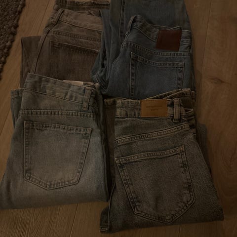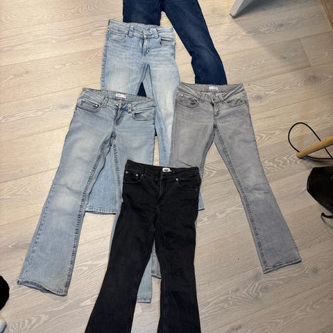 Selger en pakke med bukser som er for små i fin stand. Selges samlet.