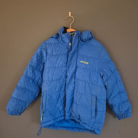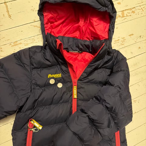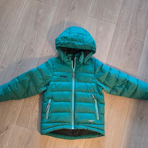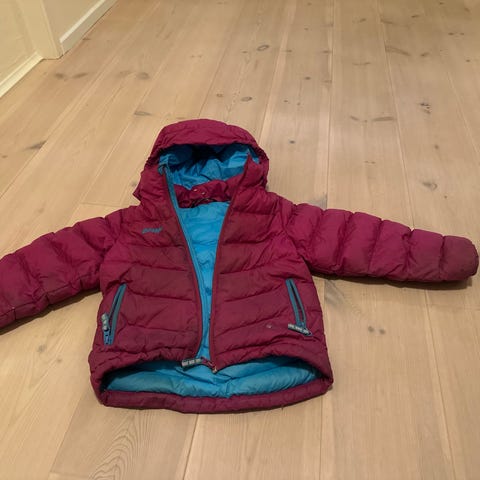 Bergans dunjakke for barn i størrelse 110, lilla farge, unisex modell.