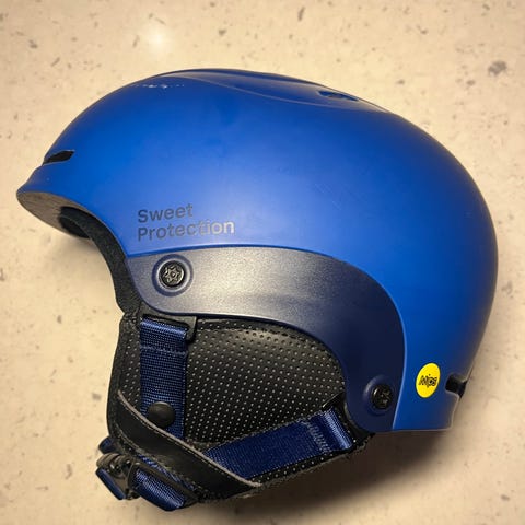 Pent brukt hjelm, av et barn. lite merke etter stropp fra briller.