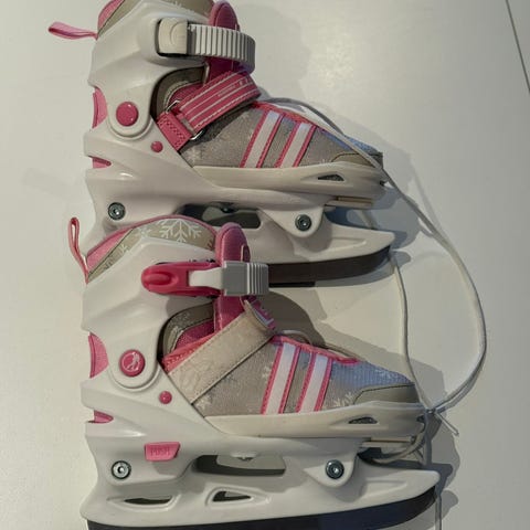 Pent brukte skøyter til barn selges for 350,- Justerbar størrelse - str 26-31. Brukt mindre enn 10 ganger, så i meget god stand. Begge beskyttelseslistene følger med.