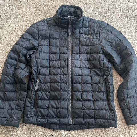 Godt brukt dunjakke (ekte dun) fra North Face. Har hull på ermene som har vært teipet (se bilde) + ett hull på ryggen som er fikset med refleks.